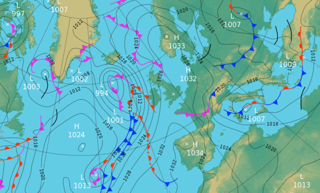 Hi Emilio, de kaarten met hoge- en lagedrukgebieden gebruik ik vooral om te weten waar de luchtmassa vandaan komt (maritiem polair, continentaal tropisch, maritiem tropisch of continentaal polair). Aan de hand daarvan weet je iets over de vochtigheid van de lucht en of de luchtmassa koud of warm is. Met wind uit het noord/noord-oosten hebben we in België bijvoorbeeld vaak de beste luchtmassa, die thermisch actief is. (Zuid-)westen wind is meestal instabiel genoeg om thermiek te hebben, maar brengt ook vaak wolken/regen/storm met zich mee omdat de luchtmassa vanuit zee wordt aangevoerd.
