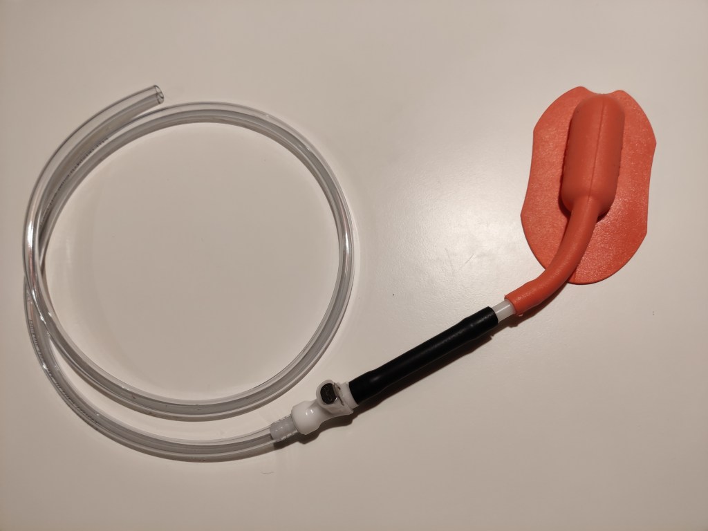 De She-P is een soort plastuit van heel zachte en flexibele silicone, die je vastplakt en de hele dag kunt dragen. Aan het device zit een connectiestuk dat je aansluit op een slangetje dat je overboord hangt. Je kan het na gebruik schoonmaken en is zo vaak als je wilt herbruikbaar.